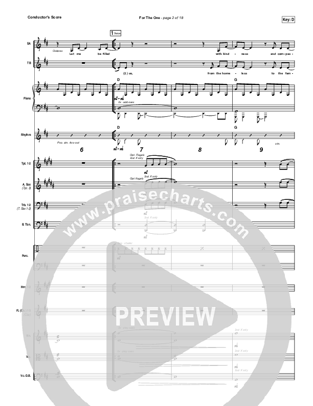 Download the Orchestration for For The One by Brian Johnson / Jenn Johnson, from the album After All These Years. This song was arranged by Dustin Loehrs / Daniel Galbraith in the key of D, Eb.