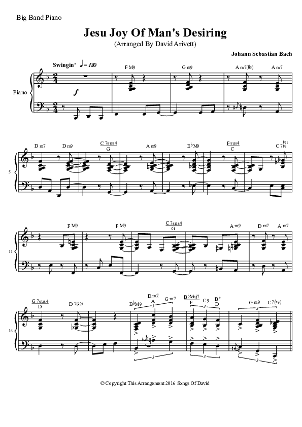 Download the Orchestration for Jesu Joy Of Man's Desiring (Instrumental) by David Arivett, from the album Jazzed In Church.