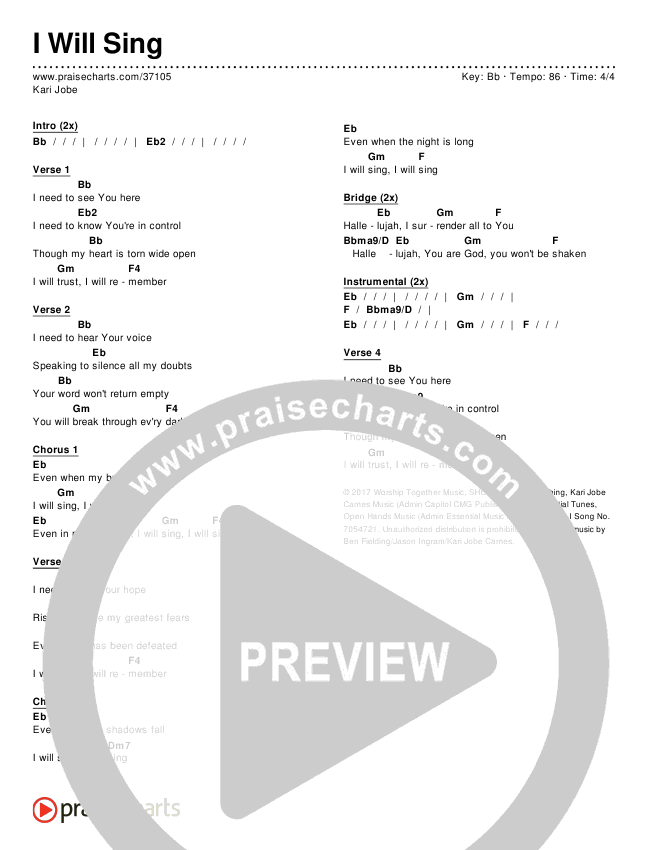 I Will Sing Chords PDF (Kari Jobe)