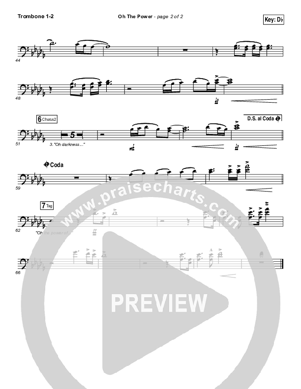 Download the Trombone 1,2 sheet music for Oh The Power by Kari Jobe, from the album The Garden. This song was arranged by Daniel Galbraith in the key of C, D, Db.