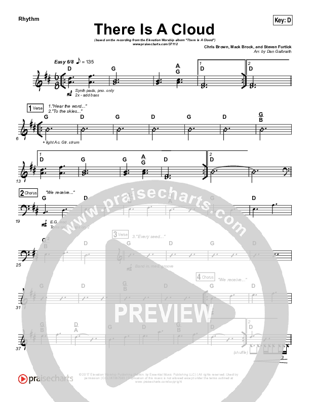 Download the Rhythm Chart for There Is A Cloud by Elevation Worship, from the album There Is A Cloud. This song was arranged by Daniel Galbraith in the key of C, D.