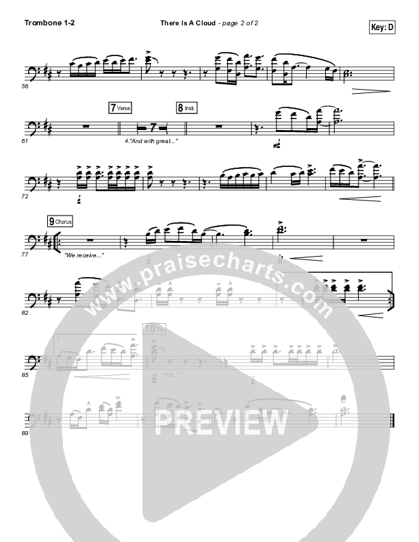 Download the Trombone 1,2 sheet music for There Is A Cloud by Elevation Worship, from the album There Is A Cloud. This song was arranged by Daniel Galbraith in the key of C, D.