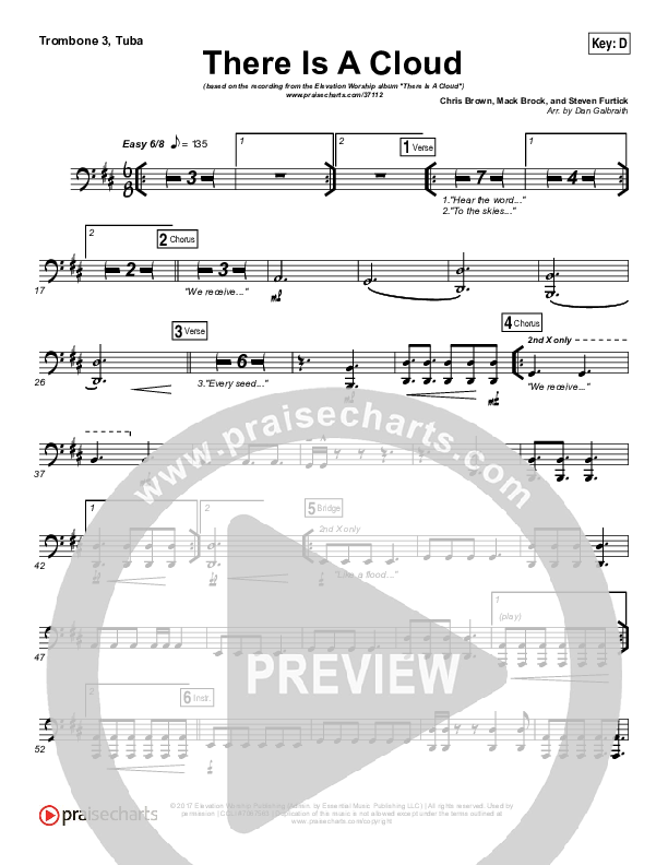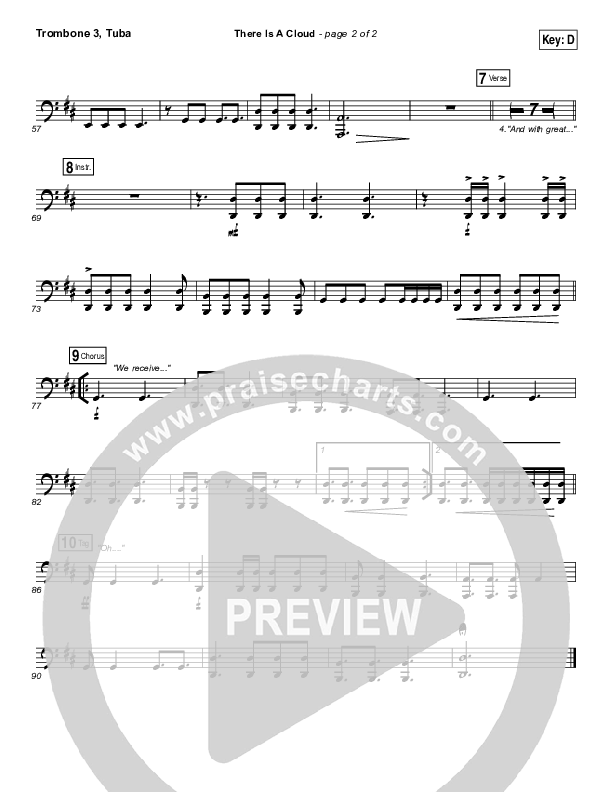 Download the Trombone 3/Tuba sheet music for There Is A Cloud by Elevation Worship, from the album There Is A Cloud. This song was arranged by Daniel Galbraith in the key of C, D.
