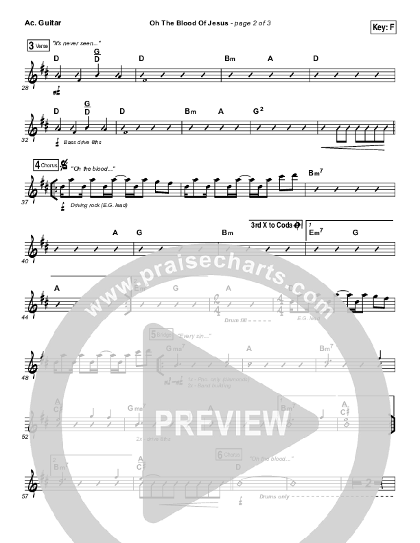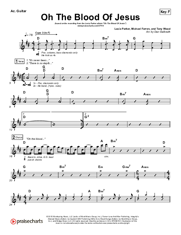 Download the Acoustic Guitar sheet music for Oh The Blood Of Jesus by Lucia Parker, from the album Oh The Blood Of Jesus. This song was arranged by Daniel Galbraith in the key of F, G.
