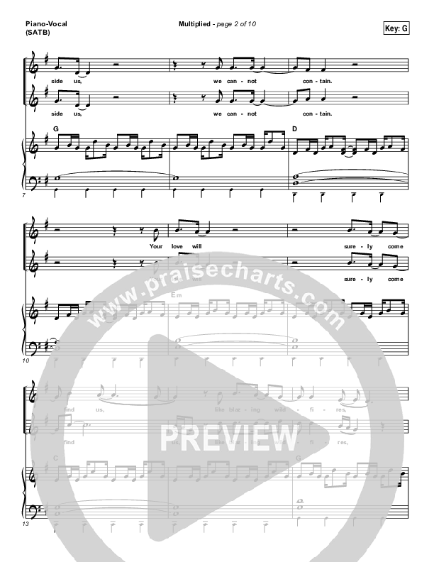 Download the sheet music for Multiplied by Needtobreathe, from the album Rivers In The Wasteland. This song was arranged by Daniel Galbraith in the key of F, G.