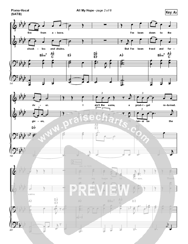 Download the sheet music for All My Hope by David Crowder, from the album American Prodigal. This song was arranged by Daniel Galbraith in the key of A, Ab, C, F, G.