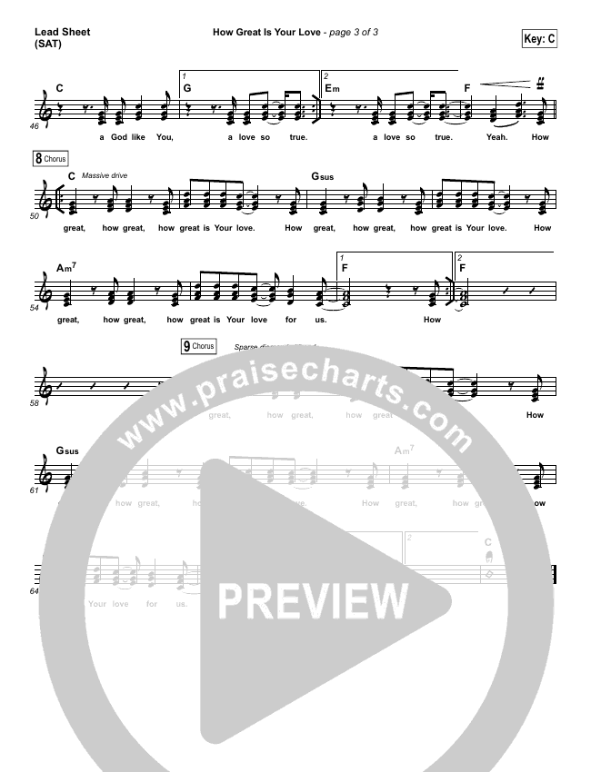 Download the sheet music for How Great Is Your Love by Passion / Kristian Stanfill, from the album Worthy Of Your Name. This song was arranged by Jared Haschek / Daniel Galbraith in the key of B, Bb, C.
