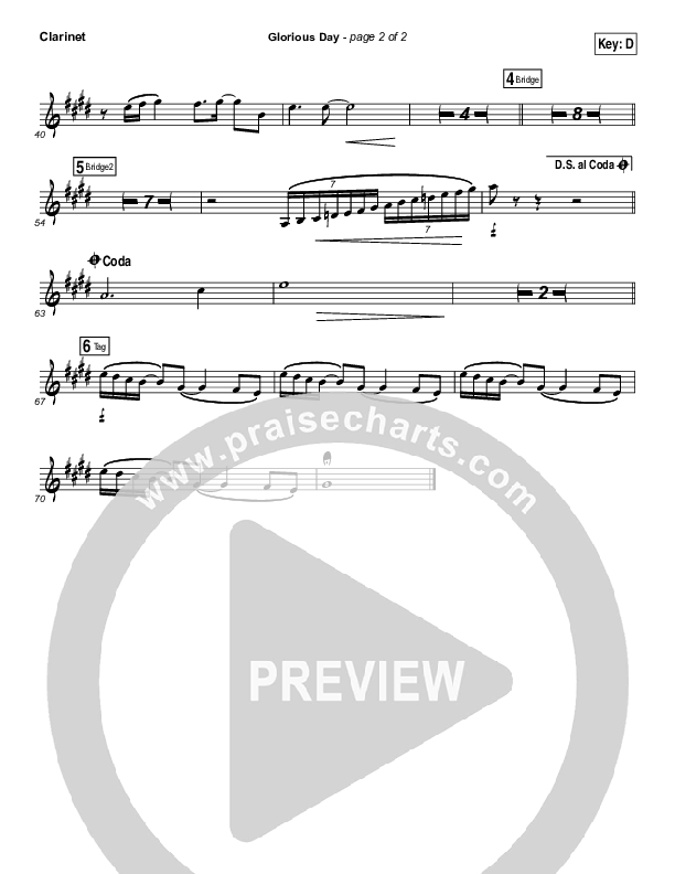 Glorious Day Clarinet Sheet Music PDF (Passion / Kristian Stanfill)