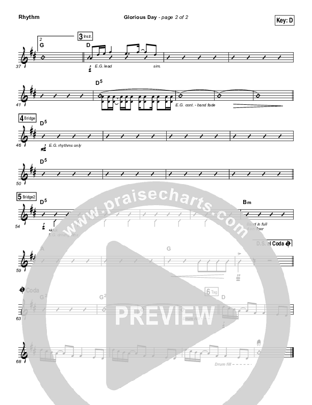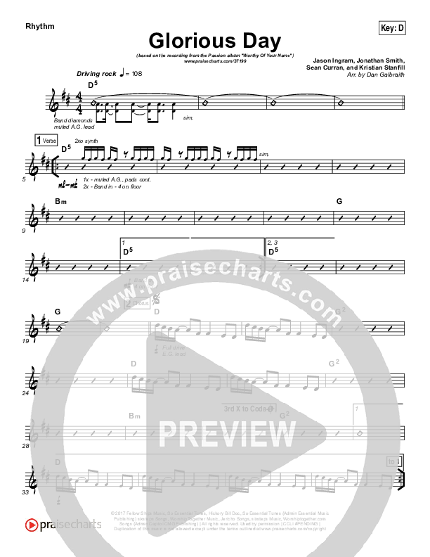 Download the Rhythm Chart for Glorious Day by Passion / Kristian Stanfill, from the album Worthy Of Your Name. This song was arranged by Daniel Galbraith in the key of A, B, Bb, C, D, E, G.