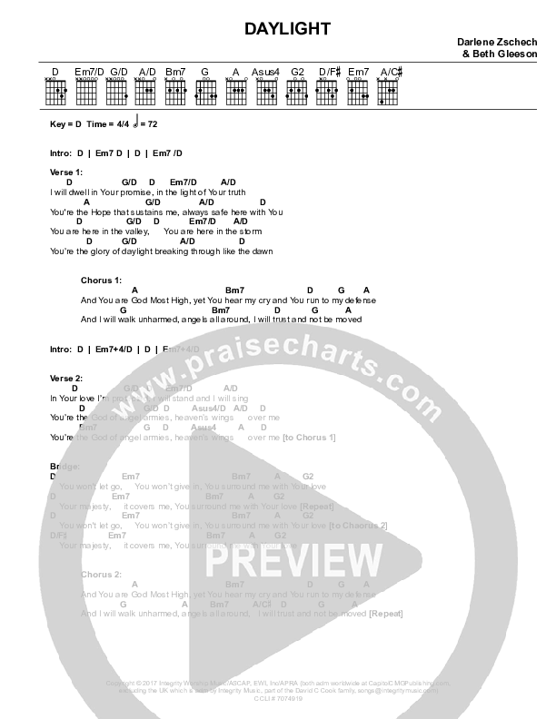 Daylight Chords PDF (Darlene Zschech / Beth Gleeson)