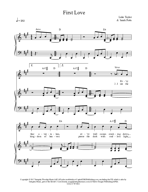 First Love Piano/Vocal (Darlene Zschech / Luke Taylor)