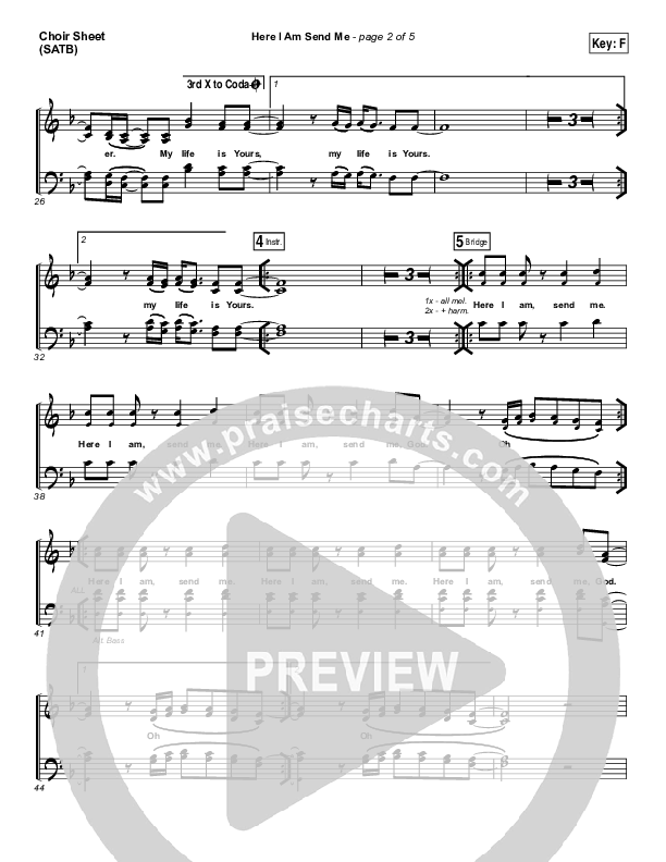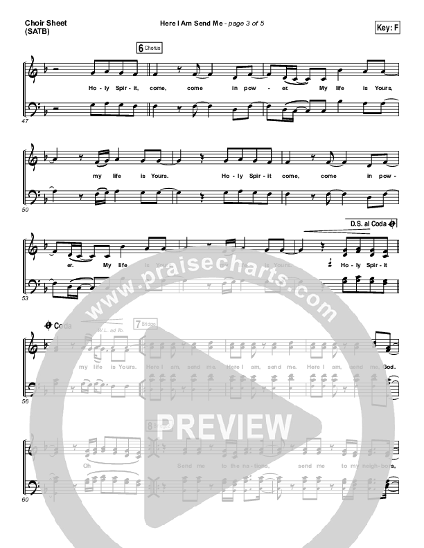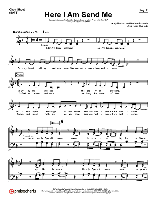 Download the Choir Sheet for Here I Am Send Me by Darlene Zschech, from the album Here I Am Send Me. This song was arranged by Daniel Galbraith in the key of E, F.