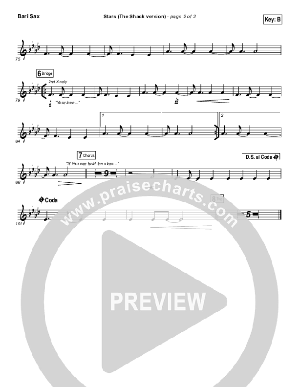 Download the Bari Sax sheet music for Stars by Skillet, from the album The Shack. This song was arranged by Daniel Galbraith in the key of B, Bb.