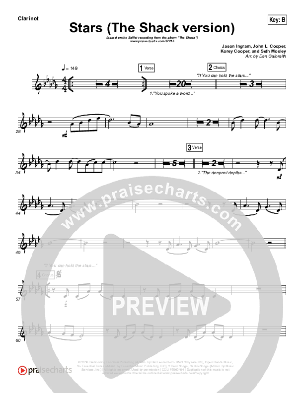 Download the Orchestration for Stars by Skillet, from the album The Shack. This song was arranged by Daniel Galbraith in the key of B, Bb.