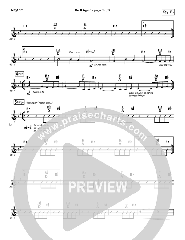 Download the Rhythm Chart for Do It Again by Elevation Worship, from the album There Is A Cloud. This song was arranged by Daniel Galbraith in the key of A, Ab, Bb, F, G.