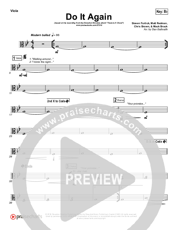 Download the Viola sheet music for Do It Again by Elevation Worship, from the album There Is A Cloud. This song was arranged by Daniel Galbraith in the key of A, Ab, Bb, F, G.