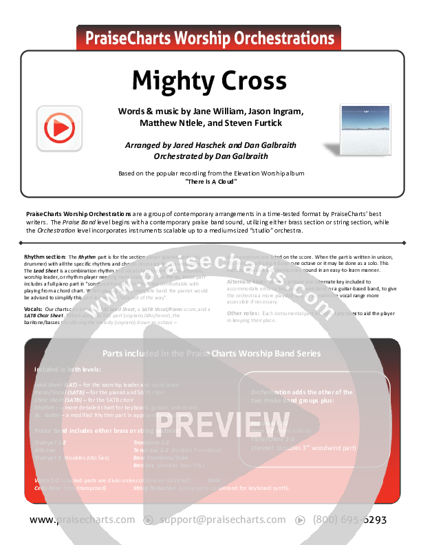 Download the Orchestration for Mighty Cross by Elevation Worship, from the album There Is A Cloud. This song was arranged by Jared Haschek / Daniel Galbraith in the key of A, Ab, G.