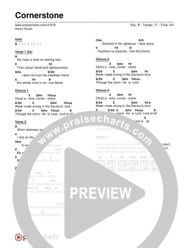 Download the PDF Chord Charts for Cornerstone by Aaron Shust, from the album Love Made A Way. This song was arranged by Ed Kerr in the key of A, B.
