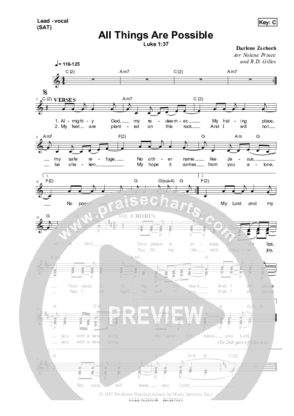 Download the sheet music for All Things Are Possible by Dennis Prince / Nolene Prince, from the album Resource Christian Music.