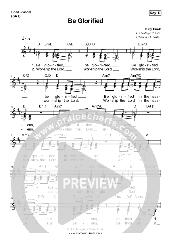 Download the sheet music for Be Glorified by Dennis Prince / Nolene Prince, from the album Resource Christian Music.