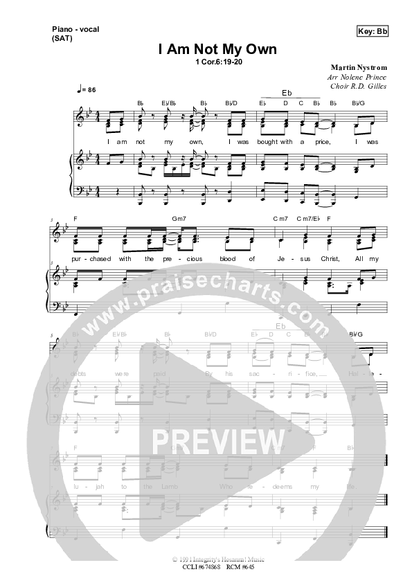 Download the sheet music for I Am Not My Own by Dennis Prince / Nolene Prince, from the album Resource Christian Music.