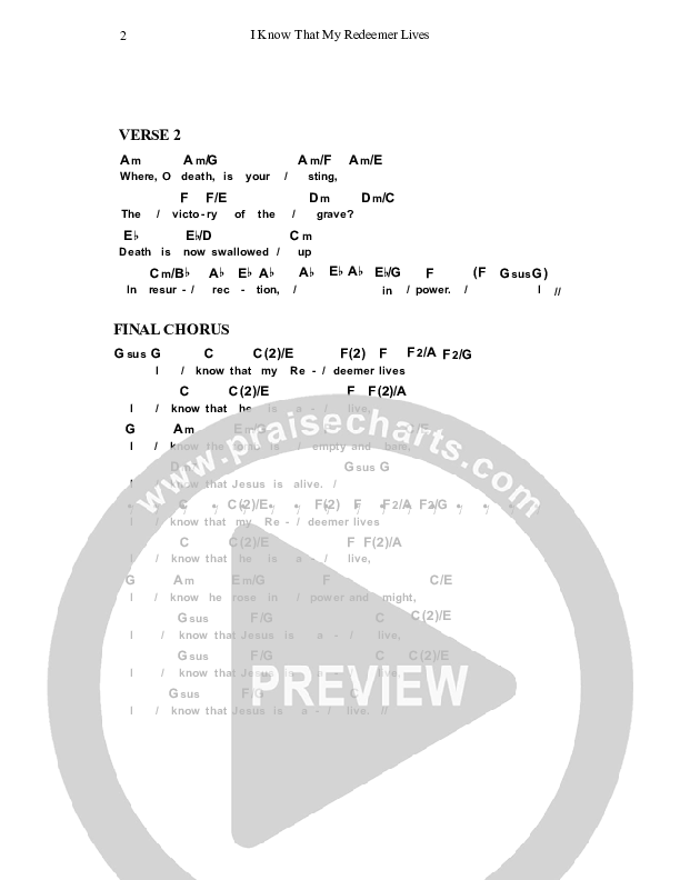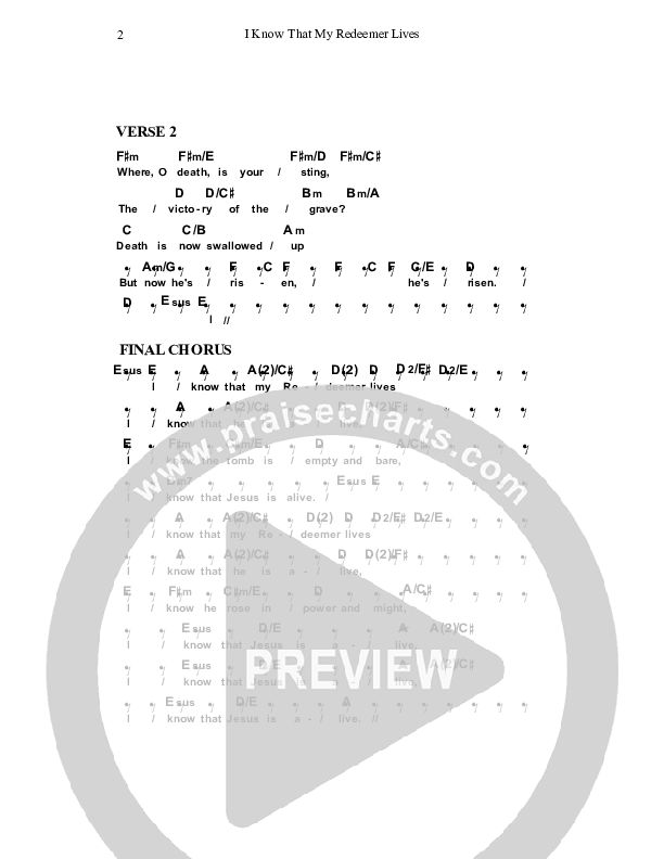Download the PDF Chord Charts for I Know That My Redeemer Lives by Dennis Prince / Nolene Prince, from the album Resource Christian Music.
