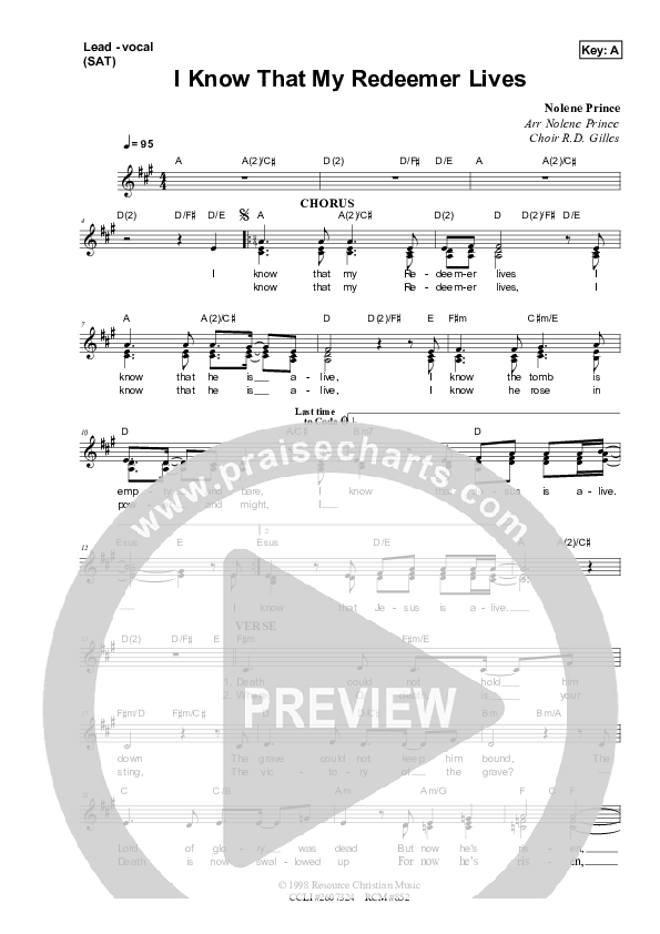 Download the sheet music for I Know That My Redeemer Lives by Dennis Prince / Nolene Prince, from the album Resource Christian Music.