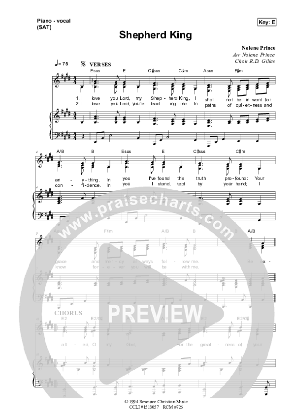 Download the sheet music for Shepherd King by Dennis Prince / Nolene Prince, from the album Resource Christian Music.