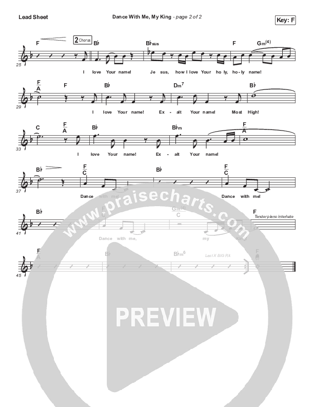 Download the sheet music for Dance With Me My King by Dennis Jernigan, from the album The Middle Of Nowhere. This song was arranged by Brad Henderson in the key of E, F.