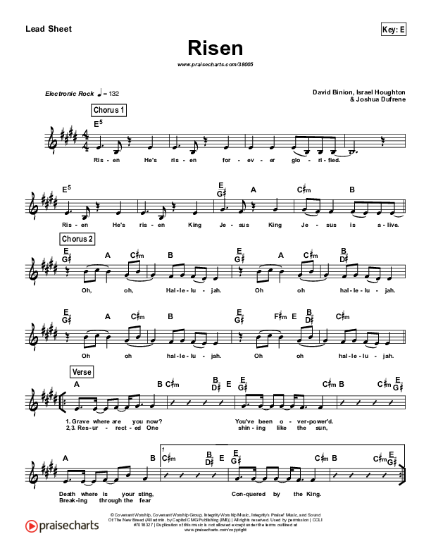 Download the sheet music for Risen (Simplified), from the album Simplified Worship. This song was arranged by PraiseCharts in the key of A, Ab, B, Bb, C, D, Db, E, Eb, F, G, Gb.