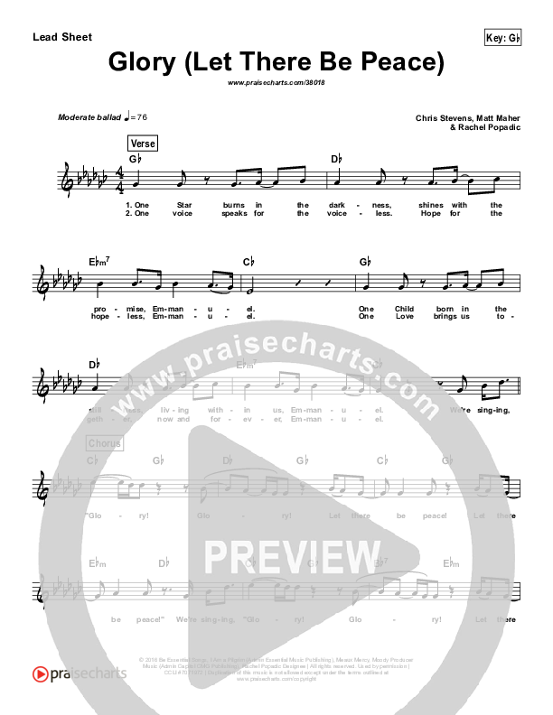Download the sheet music for Glory (Let There Be Peace) (Simplified), from the album Simplified Worship. This song was arranged by PraiseCharts in the key of A, Ab, B, Bb, C, D, Db, E, Eb, F, G, Gb.