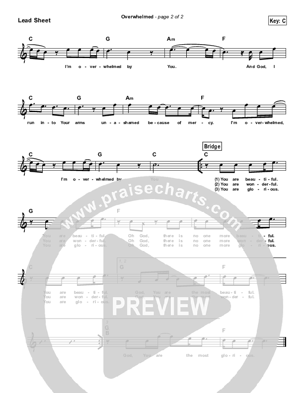 Download the sheet music for Overwhelmed (Simplified), from the album Simplified Worship. This song was arranged by PraiseCharts in the key of A, B, Bb, C, D, Db, F, Gb.