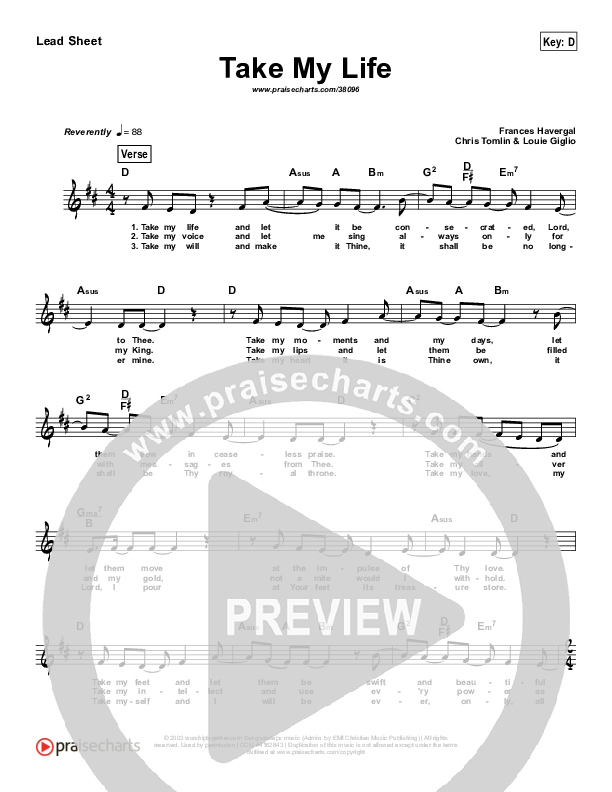 Download the sheet music for Take My Life (Simplified) by Chris Tomlin / Passion, from the album Simplified Worship. This song was arranged by PraiseCharts in the key of A, Ab, B, Bb, C, D, Db, E, Eb, F, G, Gb.