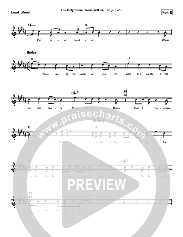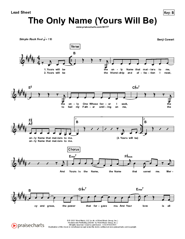 Download the sheet music for The Only Name (Yours Will Be) (Simplified), from the album Simplified Worship. This song was arranged by PraiseCharts in the key of B, C.