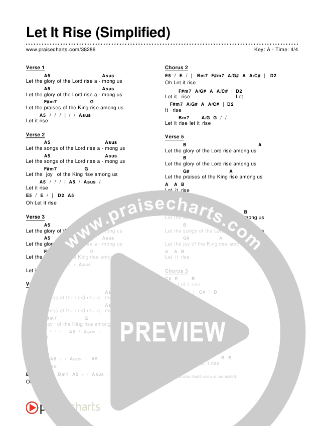 Download the PDF Chord Charts for Let It Rise (Simplified), from the album Simplified Worship. This song was arranged by PraiseCharts in the key of A,Ab,B,Bb,C,D,Db,E,Eb,F,G,Gb.