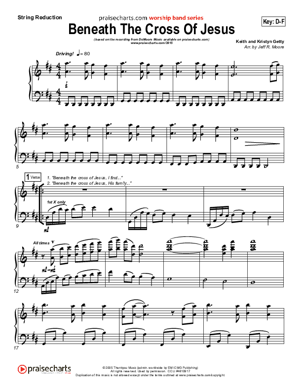 Download the Orchestration string parts for Beneath The Cross Of Jesus by DuMoore Music, from the album Worship. This song was arranged by Jeff Moore in the key of D.