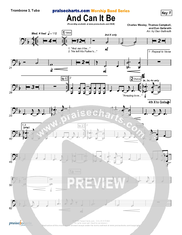 And Can It Be Trombone/Tuba Sheet Music PDF (PraiseCharts Band / Arr. Daniel Galbraith)