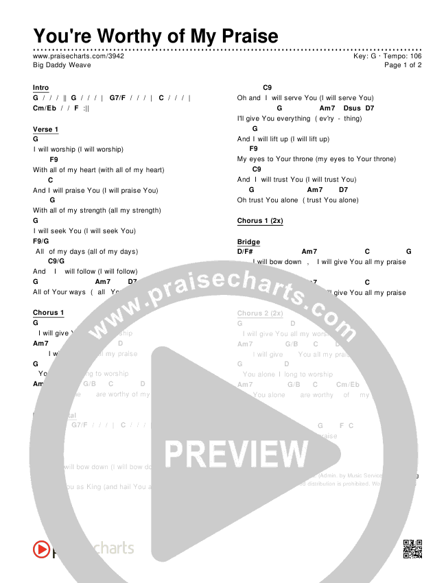 You're Worthy Of My Praise Chords PDF (Big Daddy Weave)