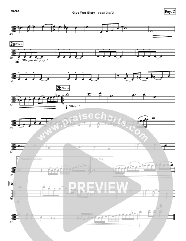Download the Viola sheet music for Give You Glory by Jeremy Camp, from the album Beyond Measure. This song was arranged by Daniel Galbraith / Shane Ohlson in the key of C, D.