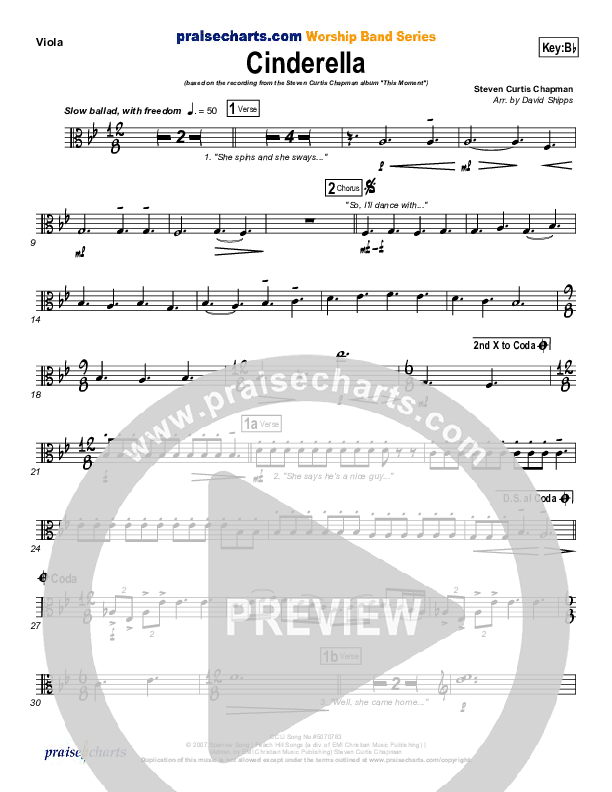 Download the Viola sheet music for Cinderella by Steven Curtis Chapman, from the album This Moment. This song was arranged by David Shipps in the key of Bb, G.
