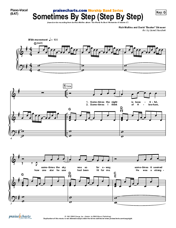 Download the sheet music for Sometimes By Step by Rich Mullins, from the album WOW Worship Aqua. This song was arranged by Jared Haschek in the key of F, G.