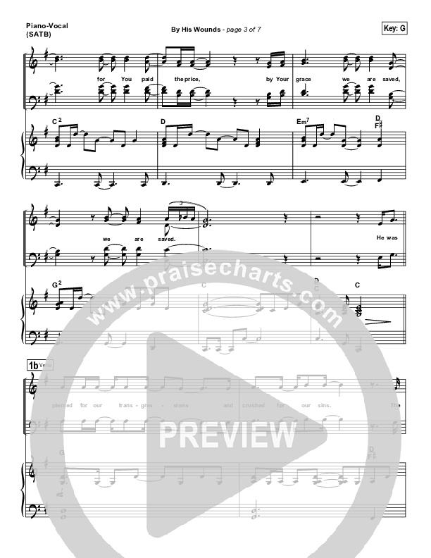 Download the sheet music for By His Wounds by Brian Littrell, from the album Glory Revealed. This song was arranged by Daniel Galbraith in the key of F, G.