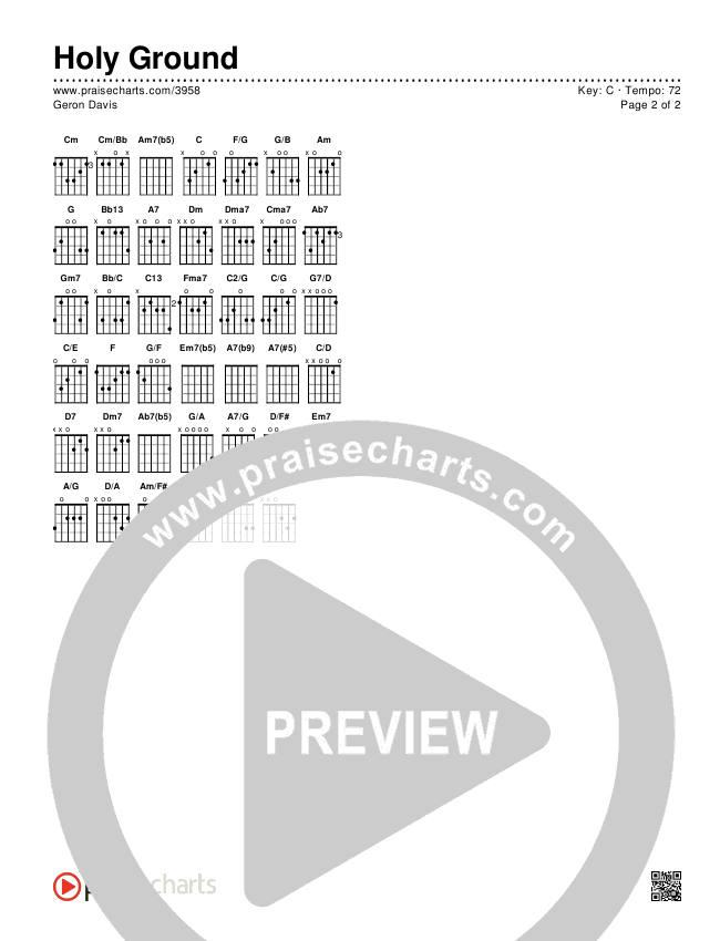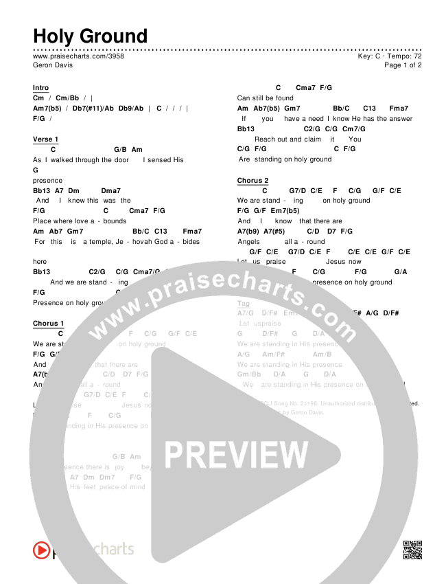 Download the PDF Chord Charts for Holy Ground by Geron Davis, from the album Holy Ground. This song was arranged by Brad Henderson in the key of C, D.