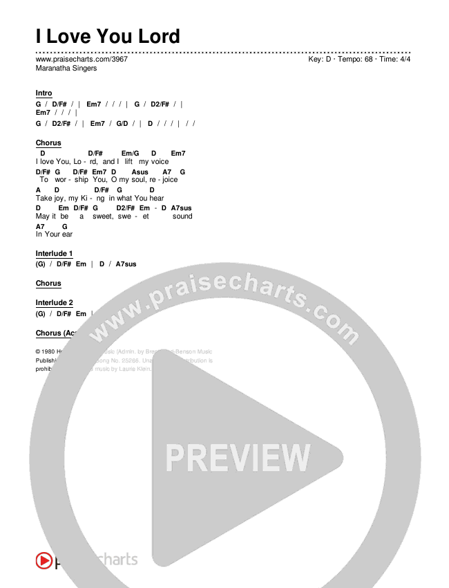 I Love You Lord Chords PDF (Maranatha Singers)