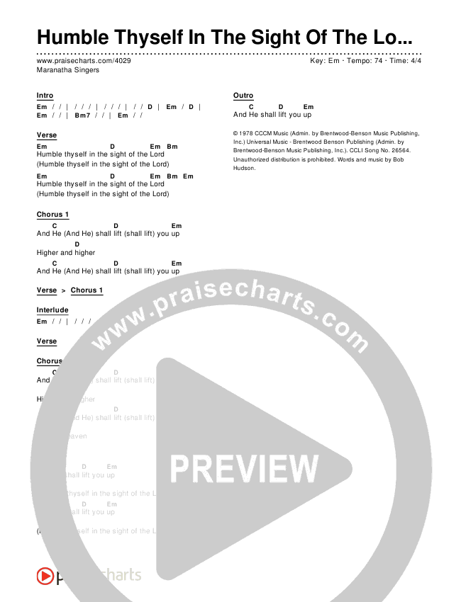 Humble Thyself In The Sight Of The Lord Chords PDF (Maranatha Singers)