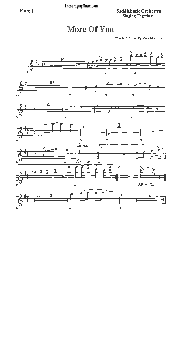 Download the Flute sheet music for More of You by Rick Muchow, from the album Home. This song was arranged by Encouraging Music in the key of D.