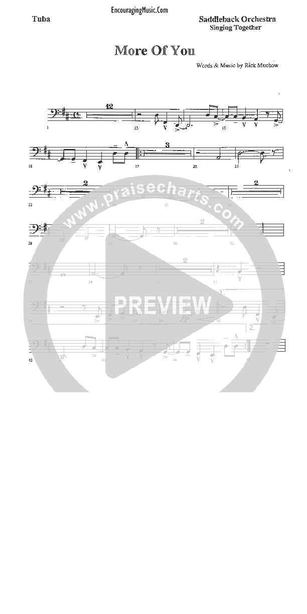 Download the Orchestration for More of You by Rick Muchow, from the album Home. This song was arranged by Encouraging Music in the key of D.