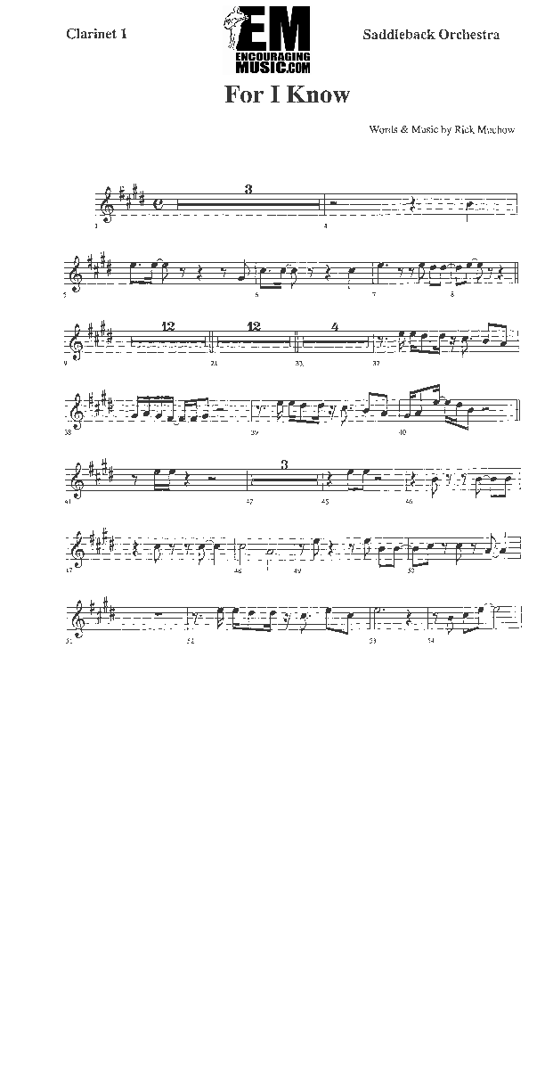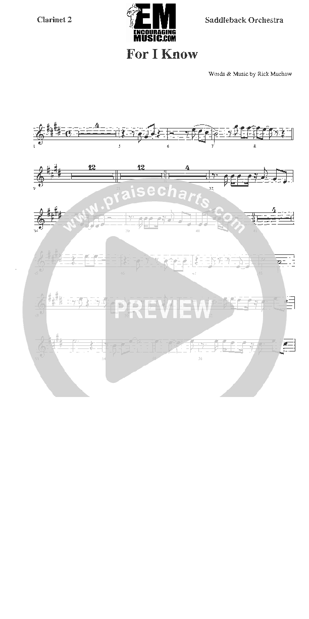 Download the Clarinet sheet music for For I Know by Rick Muchow, from the album Promises. This song was arranged by Encouraging Music in the key of D.