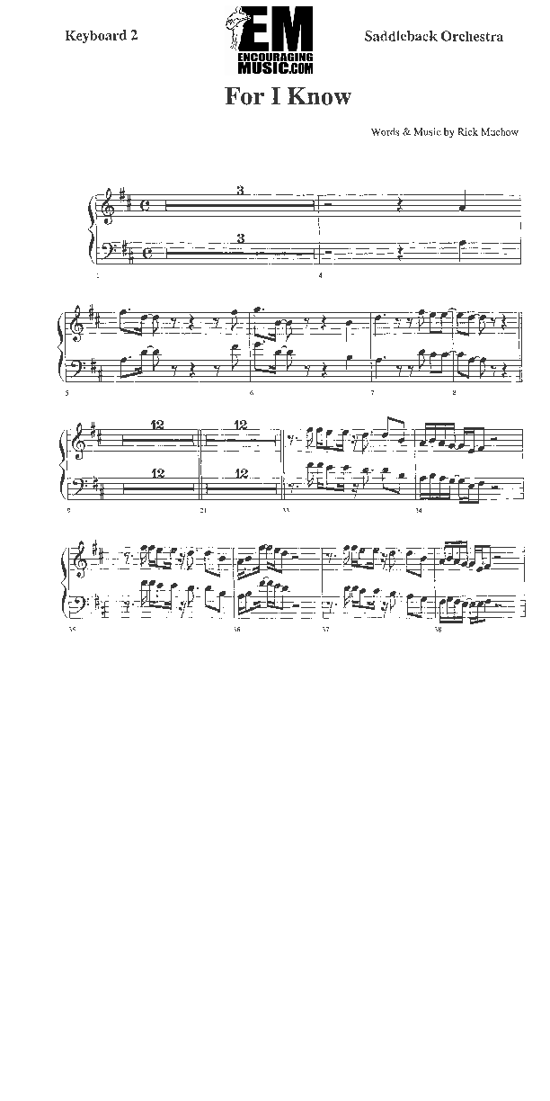 Download the Orchestration for For I Know by Rick Muchow, from the album Promises. This song was arranged by Encouraging Music in the key of D.