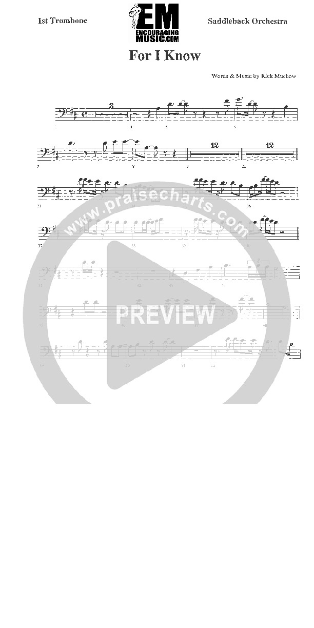 Download the Orchestration for For I Know by Rick Muchow, from the album Promises. This song was arranged by Encouraging Music in the key of D.